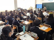 12月7日6時間目に、体育館で3年生に、オンラインで教室にて2年生に対して、国際ソロプチミスト大阪―南陵主催の「性教育啓発 出前授業」を実施しました。講師の先生は、京都大学医学部付属病院産婦人科医師の池田裕美枝さんでした。お話は、思春期という時期の特徴、性について、妊娠と出産、こどもを育てることのたいへんさと大切さ、性感染症について、性暴力の意味と危険性。そして、自分が被害者になるかもしれないということ。など、多岐にわたる内容をわかりやすく、丁寧に、それでいて端的に伝えてくれました。生徒も、丁寧なお話に、しっかり聞き、最後は、講師の先生に質問にいくなど、積極的な場面もありました。